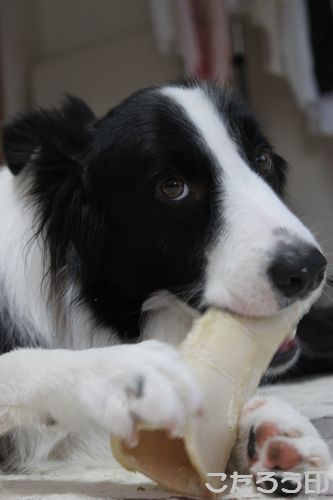 お次は、大好きな骨をガジガジ。