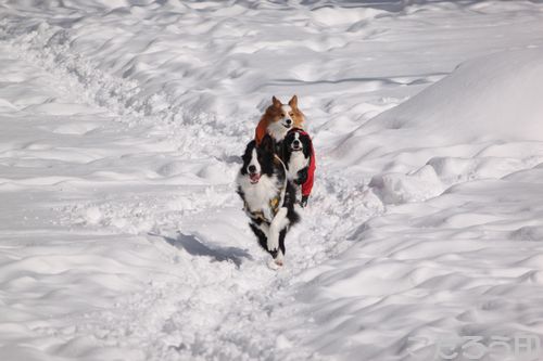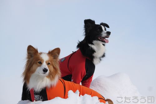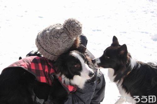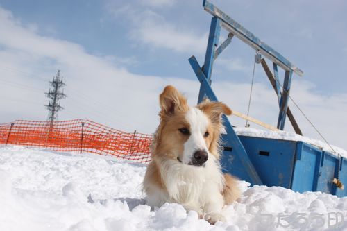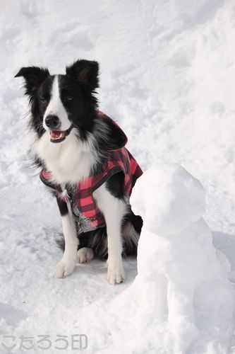 誰かが作ってくれたのか、とってもかわいいワンコ雪像。
