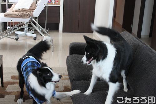 お互いに興味ない感じで、コタは非常にいやがっています。